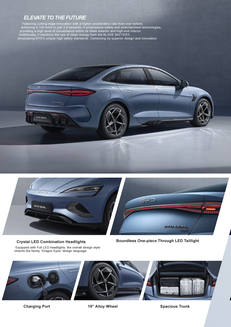 Estetika Laut. BYD SEAL dibangun berdasarkan konsep desain "estetika laut". Proporsi bodi yang eksklusif berasal dari perburuan sampai akhir akan keindahan. Mencari inspirasi antara gerakan dan ketenangan laut serta mewujudkan keanggunan dan keindahan unik BYD SEAL.